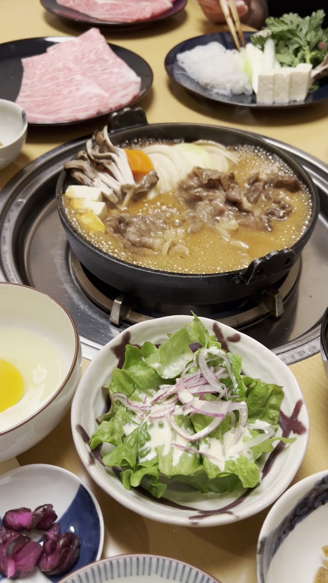 I absolutely love this restaurant! I was randomly searching for Sukiyaki in Sapporo, and this place popped up on my Google Maps—turned out to be the best and most premium Sukiyaki in town! The Wagyu A5 melted in my mouth, and the overall experience was exceptional. The restaurant, located on the 2nd floor, has a peaceful ambiance, and the waitress was a calm and lovely lady who made the meal even more enjoyable. Highly recommend trying it!