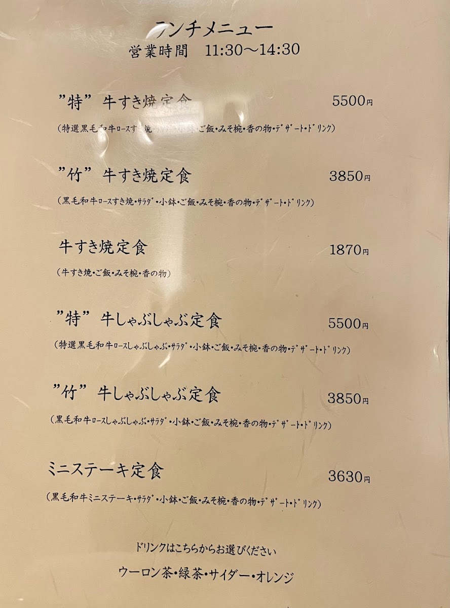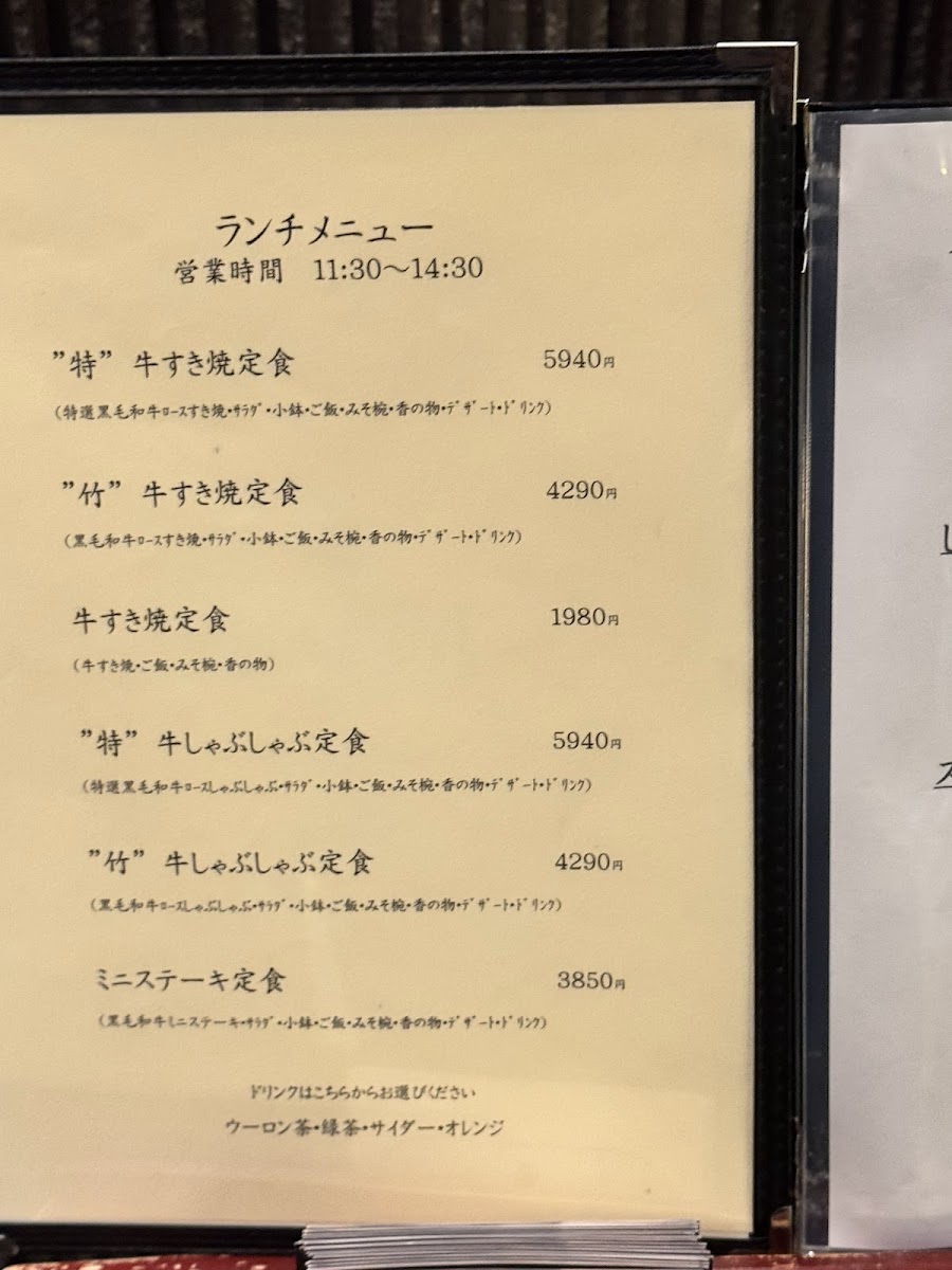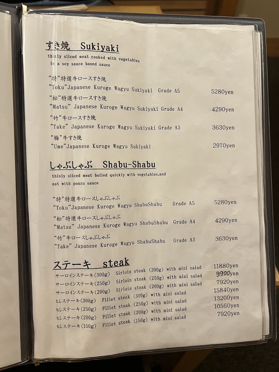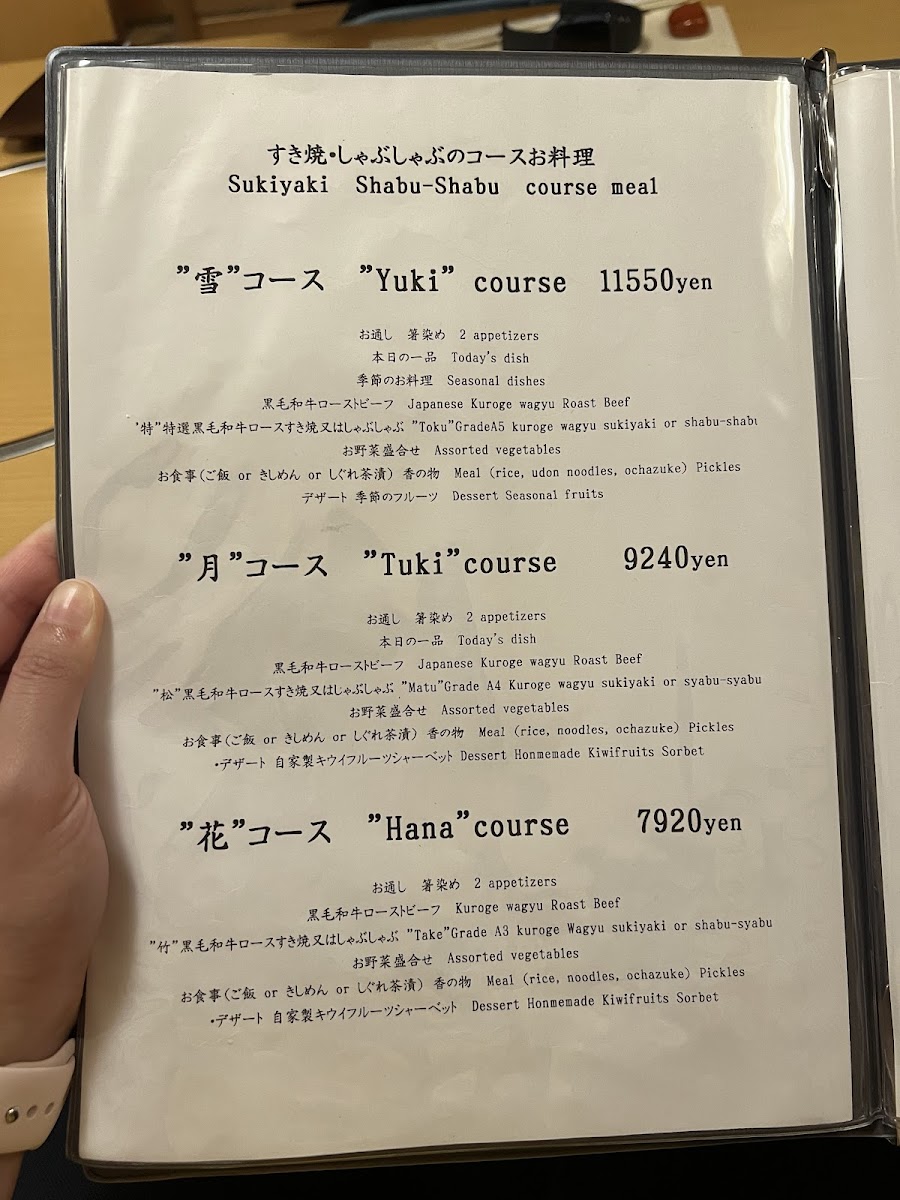 Sukiyaki Sankousha Menu
